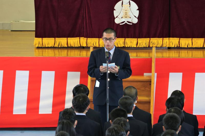 新入生を代表して挨拶。緊張の中にも、高校生活への意気込みが感じられました。
