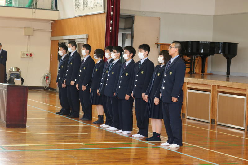 生徒会主催の対面式・部活動紹介が行われました。感染防止対策のため、2・3年生は部活動代表者のみの出席です。