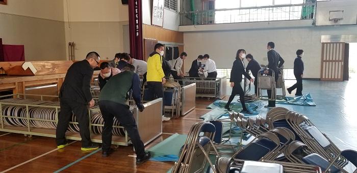 全職員で入学式の設営