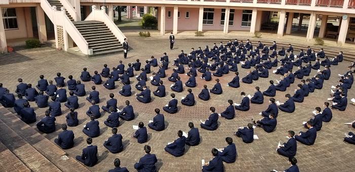 4月9日(木)14:35~15:25に、「第1回三学年集会」が行われました。集会は、新型コロナウイルス感染防止対策として、本校の中心にあるセントラルパークで行いました。