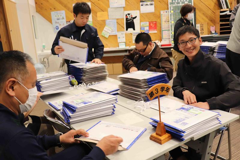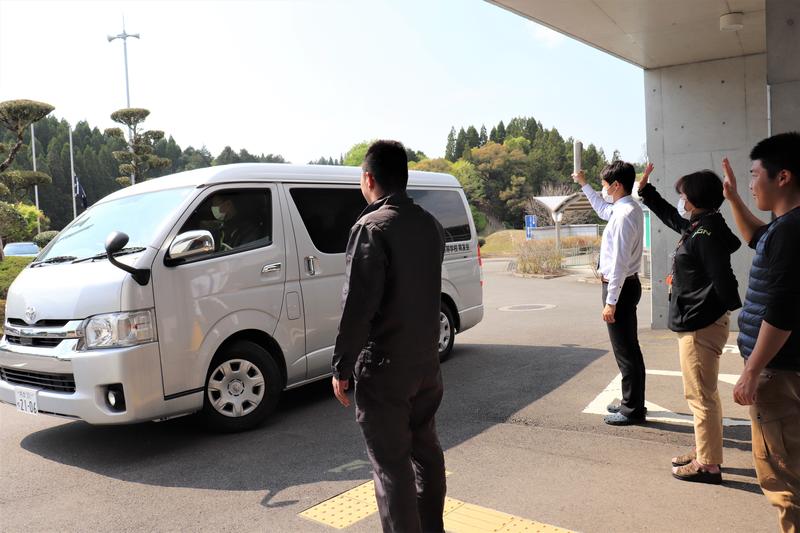 15時頃、休校中の課題セットが球磨工業高校を出発しました。