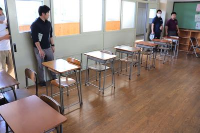 学校再開にむけて(教室に机を並べてみる)