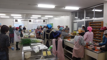 12月16日(木)は、本校の持久走大会が実施されました。それに伴い、生徒達に『おいしい豚汁を!』と育友会保護者の協力で700食分の豚汁を作りました。