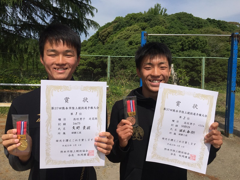 6月2日~5日までの4日間、えがお健康スタジアムにおいて熊本県高校総体が行われました。個人種目では、100m・200m・400m・800mで準決勝敗退と個人タイトルを勝ち取ることができませんでした。しかし、400mRと1600mRの両リレー種目で決勝に進出することができました。400mR決勝ではオーバーゾーンによる失格となりましたが、1600mRでは5位となり、南九州地区大会への出場権を獲得しました。また、フィールドではやり投で4位に入賞し、こちらも2年連続となる南九州地区大会への出場を決めることができました。