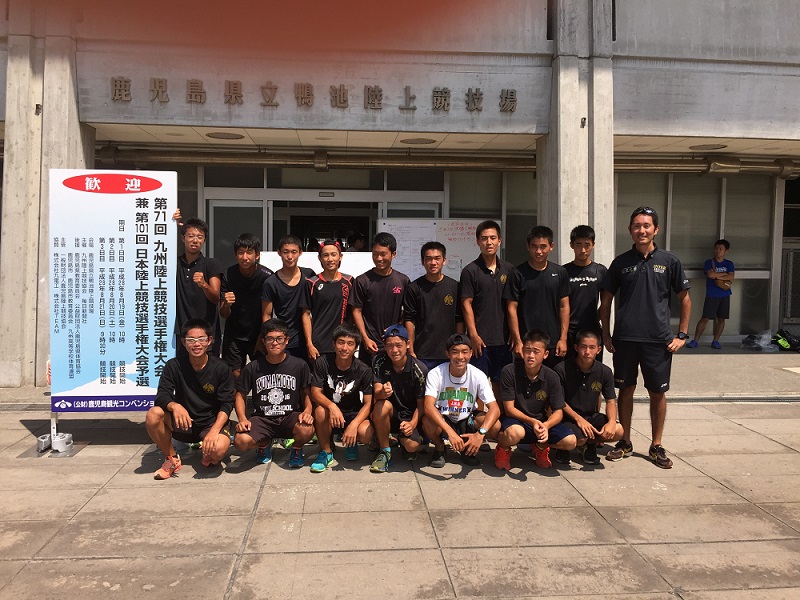 8月19日~21日の3日間、鹿児島県で開催された第71回九州陸上競技選手権大会兼第101回日本陸上競技選手権大会予選大会に、熊本県の代表チームとして4×400mRに出場して来ました。各県予選を勝ち抜いてきた32の代表チームが集い、高いレベルでの戦いが繰り広げられました。本校のマイルチームは予選16位となり、上位8位までが進出できる決勝の舞台に立つ事はできませんでした。しかし、九州地区におけるトップレベルのチームとレースができた経験は非常に大きいと思います。また、出場した熊本県のチームでは最上位となり、秋の新人戦に繋がる結果になったと思います。これから3年生が引退し、新チームに移行するので、これまで以上の成績が残せるように頑張っていきます。