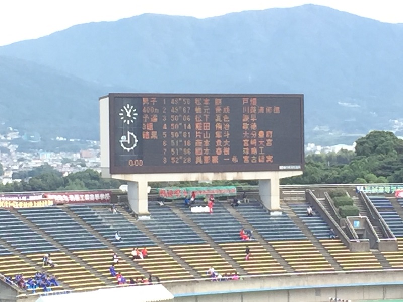 10月14日から16日にかけて、福岡県の博多の森陸上競技場において、第34全九州高等学校新人陸上競技大会が行われ、本校陸上部の國本春樹が400mと800mの2種目に熊本県の代表選手として出場して来ました。今大会は九州各県の激戦を勝ち上がってきた選手が集う大会で、全ての競技においてハイレベルな戦いが繰り広げられました。