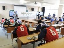 次に,建設業協会を代表し,味岡建設の丸尾さんから建設業の役割についてお話しがあり,本校卒業生のインタビュー動画を見ました。先輩の活躍に約9割の生徒が「興味を持った」と回答しています。