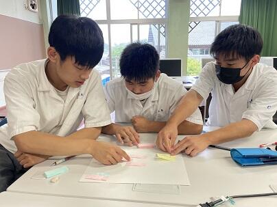 ブレーンストーミングという手法を使って,マップをどのように表現すれば良いか,意見を集約しているところです。