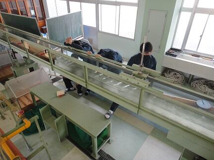 これらと並行して建設工学科の実習室で川の実験と土砂災害の実験を体験しました。