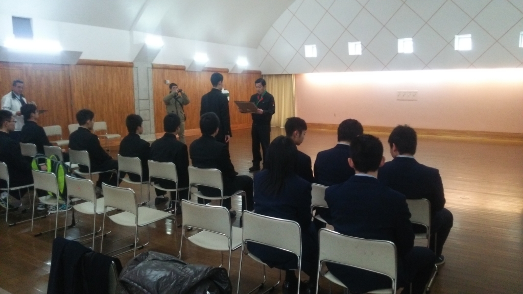 3年生が進路選択から試験・進路決定へ向けての取組みや得たものを、1・2年生の後輩へ向けて発表しました。