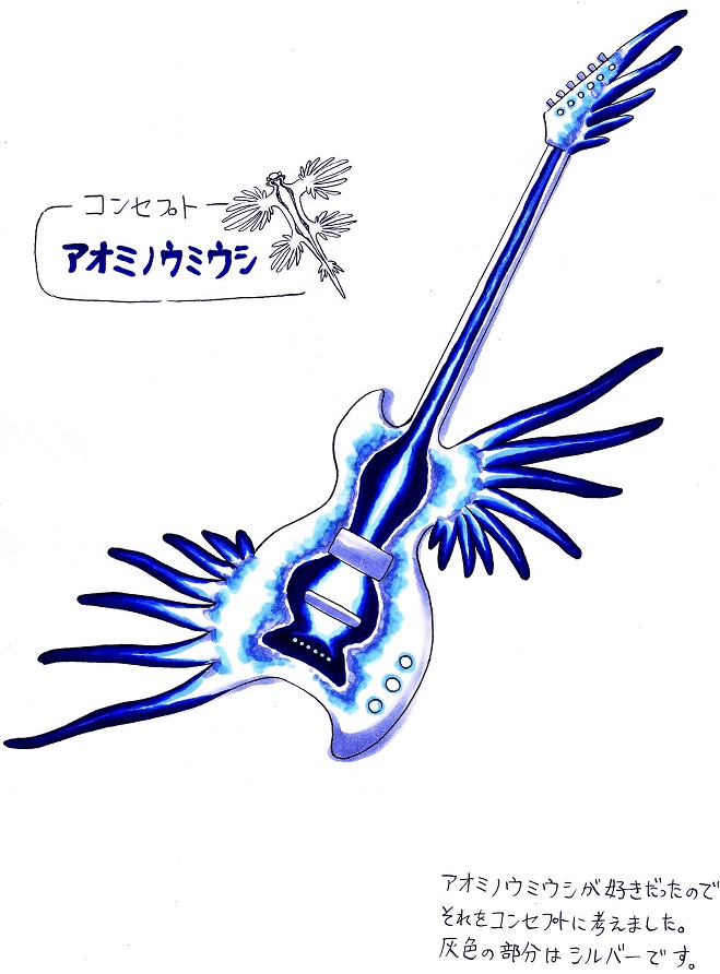 この作品は、アオミノウミウシをイメージしたギターデザイン画です。