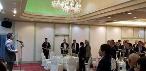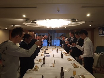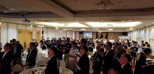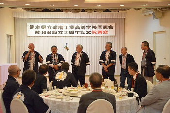 総会も無事終わり、乾杯で懇親会の始まり 会の締めは、球磨工業高校・校歌