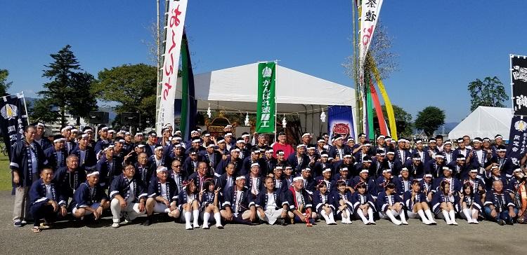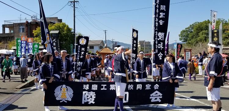 10月9日(水)の秋晴れの日に、おくんち祭が開催されました。本校からは、生徒91名、職員16名、育友会6名、陵和会18名の計131名で参加しました。神輿の途中で、球磨工名物「エッサッサ」を今年は10回も要所要所で披露し、球磨工生の力強い大声と「エッサッサ」に、観客の方々からは惜しみない拍手が響きました。