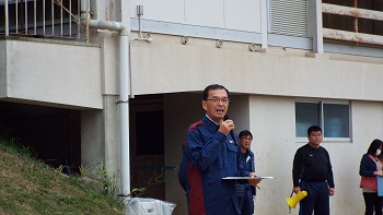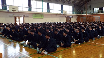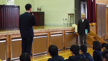 最後に、生徒会長の恒松君が謝辞を述べ、平成29年度の校内防災訓練が終了しました。