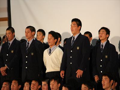 最後に謝辞を述べる生徒会長の恒松君