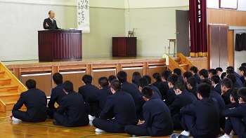 講話を聞く生徒
