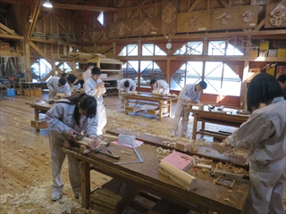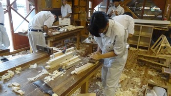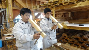 ■伝統建築コース:木材加工(鋸の横挽きとたて挽き)