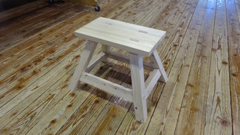 3年生の伝統建築コースでは四方転び椅子と言って脚が2方向に傾いた椅子(踏み台)の製作に取り組んでいます。脚に傾斜が付いていることにより脚に「くせ」を付けたり、貫やそれに伴うほぞ穴などの墨が難しくなってきます。神社やお寺などの手水舎や鐘楼の柱によく見られる技法です。難しいですが約半年かけてやっと完成することができました。