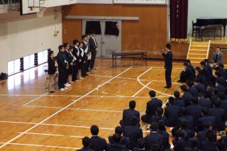 挨拶し、新生徒会執行部へバトンを渡しました。