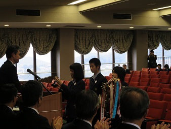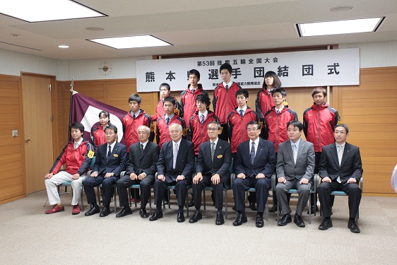 技能五輪全国大会の熊本県選手団結団式が熊本県庁舎にてあり、本校から建築大工職で出場する2名が参加しました。