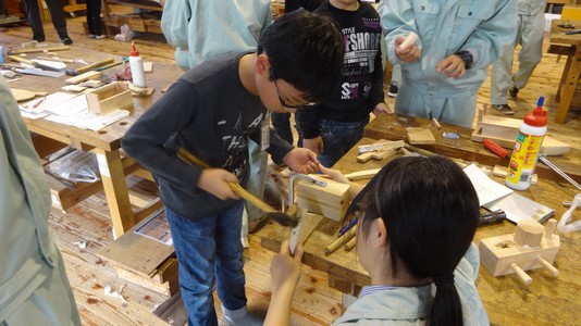 小高連携木工教室(4-2) 「なりきり大工さん」 建築科開催