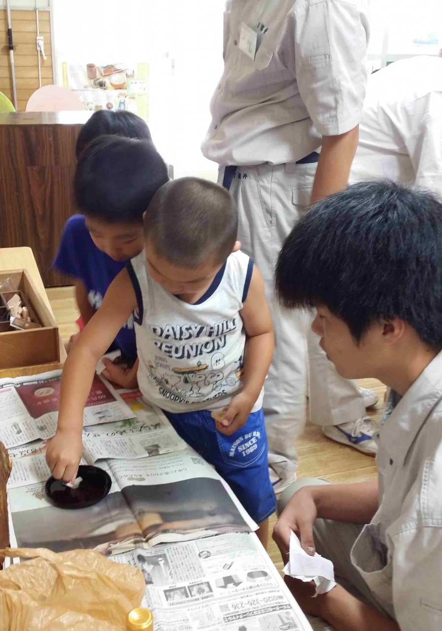 7月6日(水)と13日(水)の午後から建築科3年生の授業「課題研究」の木育班(7名)で学校の近くの青井幼稚園と人吉中央幼稚園へ行きました。木育班では、木について学ぶと共に地域との交流を通して保育の分野についても学んでいます。