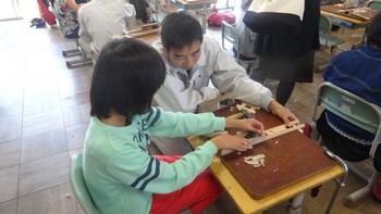 人吉市立西小学校4年2組の子どもたちと木工教室を本校にて開催しました。