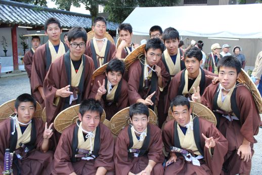 カヌー部、二・三年生25名。人吉お城祭りの武者行列に参加してきました。