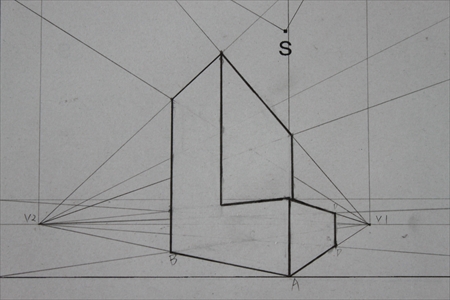 「透視図」作成のためには、たくさんの「補助線」が必要になります。