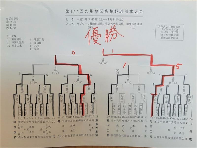 本日行われた第144回九州地区高等学校野球熊本大会決勝戦有明高校戦は、1対0で勝利しました。