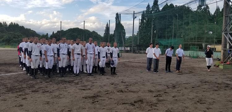 7月11日(木)18:15から野球部のグラウンドにおいて贈呈式が行われました。「体育文化振興会・部活動強化費」よりピッチングマシン1台が野球部へ、シングルのカヌー2艇がカヌー部へ贈呈されました。