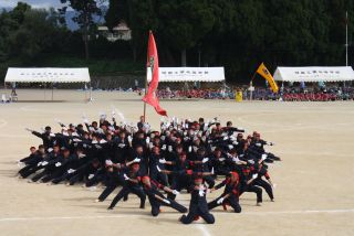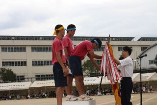 行進の部1位:建設工学群 応援団の部1位:建築群 総合優勝:機械科B群