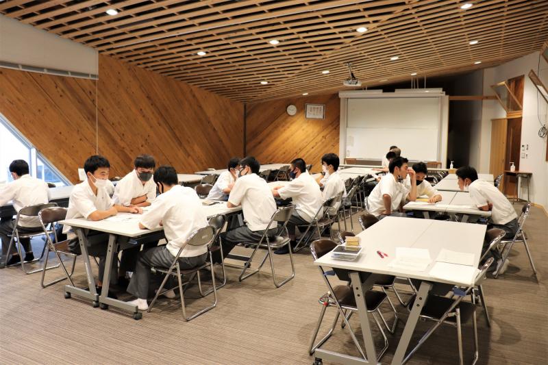 1年建築科の教室。1年生は高校生活初めての生徒総会です。これからの学校生活に期待を膨らませながら聞いているに違いありません