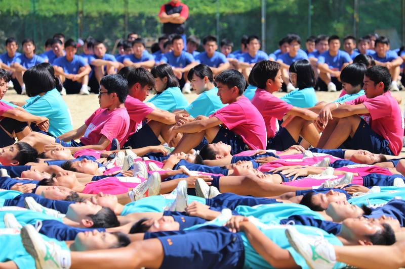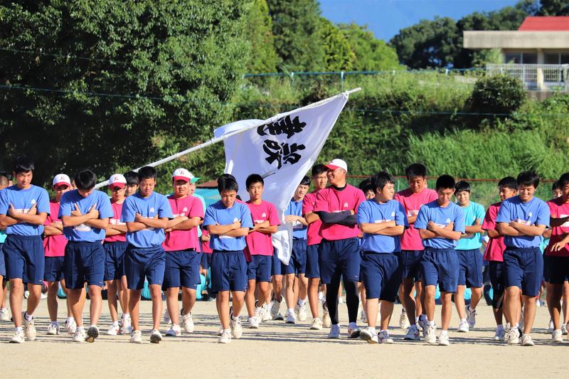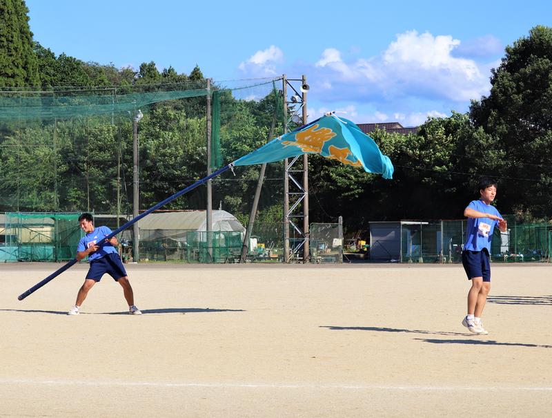 今日から、群旗を使った練習です。風になびく旗を全身で振る姿も勇壮です