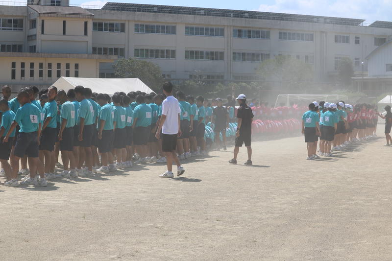 朝から容赦のない太陽のもと、全体練習が始まりました。
