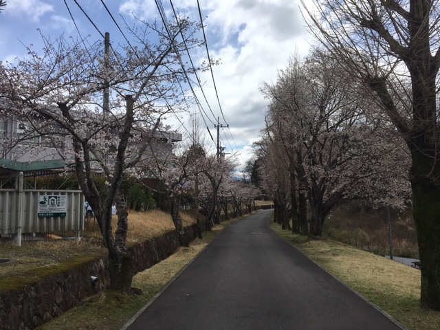 本校の正門・北門までの桜並木は、徐々に桜が花開いてます。