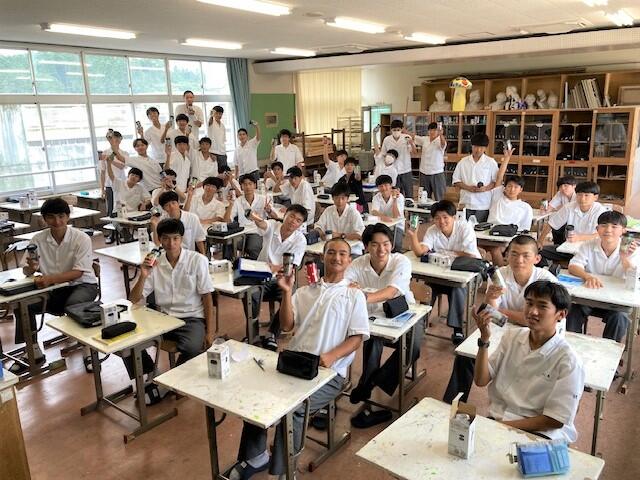 1学期にモダンテクニックという技法を用いて「タンブラー」の図柄を制作しました。