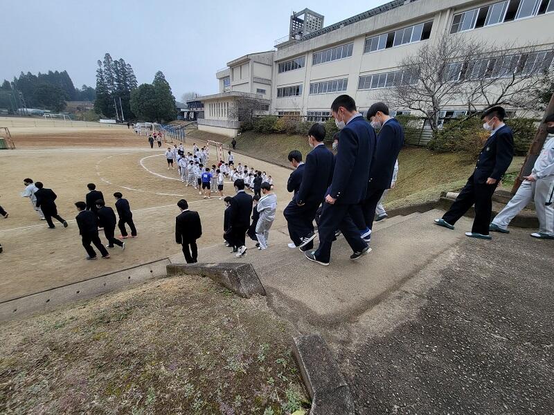 生徒全員が避難した後、原田校長による講評、続いて永吉先生(防災主任)の注意等がありました。