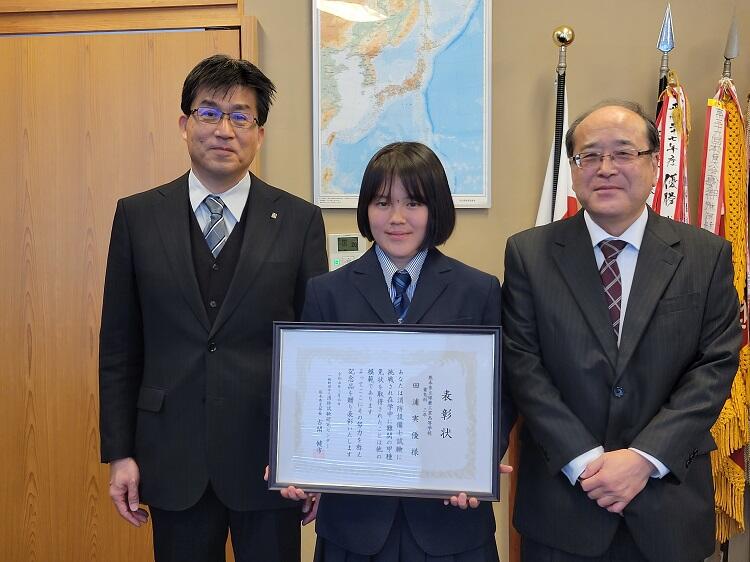 2月6日(月)13時より、『消防設備士甲種第4類免状取扱者』の授与式が行われました。見事、現役高校生で難関に合格したのは、電気科3年 田浦実優さん(人吉二中出身)です。この、消防設備士甲種第4類は、自動火災報知設備、ガス漏れ火災警報設備、消防機関へ通報する火災報知設備、共同住宅用自動火災報知設備、住戸用自動火災報知、特定小規模設備用自動火災報知設備、複合型居住設備用自動火災報知設備の工事や整備の仕事ができます。