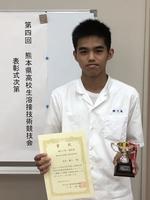 7月6日(土)に行われた第4回高校生溶接技術競技会において3MBの宮田君が優良賞を受賞しましたので参加してきました。表彰式では最優秀賞や優秀賞を受賞した県内の他の工業高校の生徒と共に表彰を受けました。宮田君は溶接部に所属し、放課後毎日練習してきました。溶接棒の角度や電流値を自分なりに工夫しながら取り組んだことが今回の結果に繋がったようです。