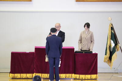 いよいよ明日に卒業式を控え、本日は同窓会入会式と表彰式が行われました。
