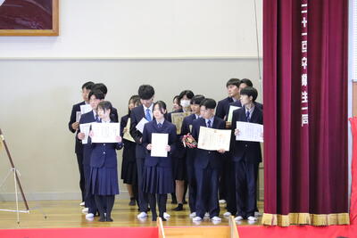 会場では、成績優秀賞や皆勤賞、資格取得に励んだジュニアマイスター、そして部活動を支えたクラブ功労賞など、多くの生徒の氏名が読み上げられました。