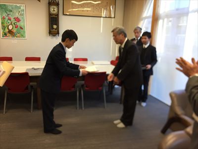 12月13日(木)に本校にて、「平成29年度第59回税に関する高校生の作文」の表彰式を行いました。対象生徒は2年機械科の國政樹(南九州税理士会人吉支部長賞)と2年建築科上原るな(人吉税務署長賞)で、人吉税務署及び南九州税理士会より表彰状と副賞が授与されました。