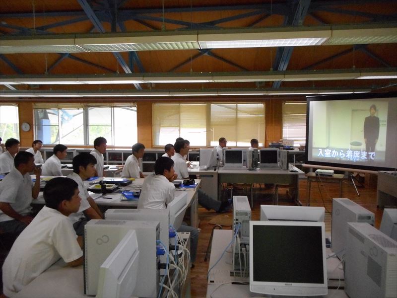 3年間の集大成である、進路対策(面接)を開始しました。今回は第1回目のオリエンテーションとして、面接時のマナー、挨拶や入退室の仕方、第一印象(メラビアンの法則)の重要性などをプレゼンテーションや動画を用い行いました。機械科3年A組、B組をそれぞれ行いましたが、皆さん真摯な態度で臨んでいました。今年度の求人もかなり多いことが予想されます。この好景気の波に乗り、第1希望の就職先に無事に合格してくれることを、心から祈念しています。来年の卒業式は、皆さん笑顔で卒業できるよう頑張って下さい。