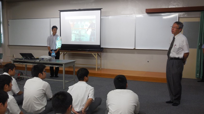 6月30日(金)の2限目に電気科1~3年生を対象に、キャリア教育の一環として先輩社員の講演を通して、働くことの意義や学生のうちにやるべきことなどを考える機会の一つになればということで、進路講話を実施しました。講師は、本校を平成23年度に卒業した吉村純(人吉一中出身)様で、現在、関西電力(株)奈良支店にお勤めで、水力変電部門・南大阪電力所にて変電設備の管理を行っておられます。