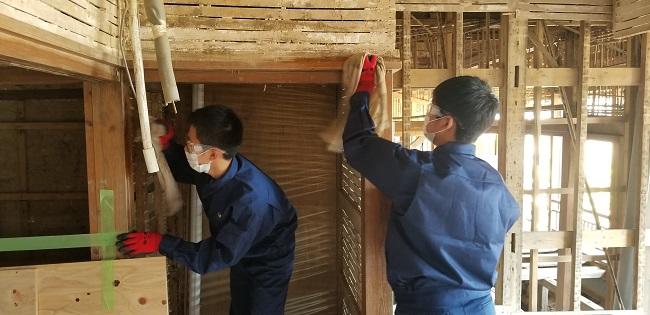 10月23日(金)午後の電気科実習の時間を使い、電気科2年生による復旧ボランティア活動を行いました。場所は、電気科1年生と同じく人吉旅館を行いました。作業内容は、天井板や床板の清掃と各部屋の拭き掃除でした。生徒達は慣れたもので手際よく作業を行っていました。