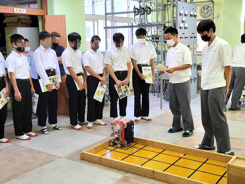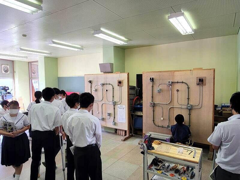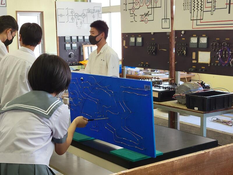 電気科の学習内容を中学生に説明してくれた生徒は、『初めは緊張して何を話しているのかわかりませんでしたが、回数を重ねる毎に段々楽しくなり、いかに中学生に電気のことをわかりやすく説明できるか。わかってもらえるか。と試行錯誤しながら説明をしました。とても楽しく勉強になりました』と話してくれました。