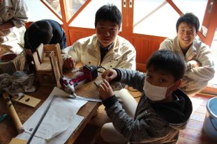 この木工教室を通して、高校生と小学生が相互に交流を深めるとともに地域に開かれた学校つくりの機会として、毎年実施しています。