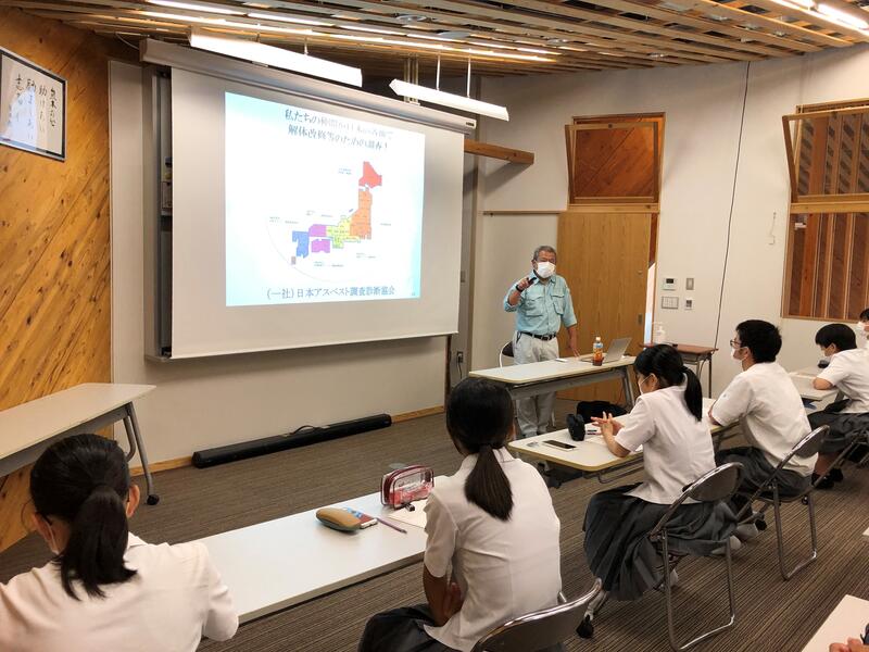 アスベストのことや、建設業のことばかりでなく、町づくり・街おこしについてのお話も盛り上がりました。3年生にとっては、これから始まる仕事を中心とした社会生活の実感がもてるような内容であり、2年生にとっては今後の進路選択に繋がる貴重な講義となりました。