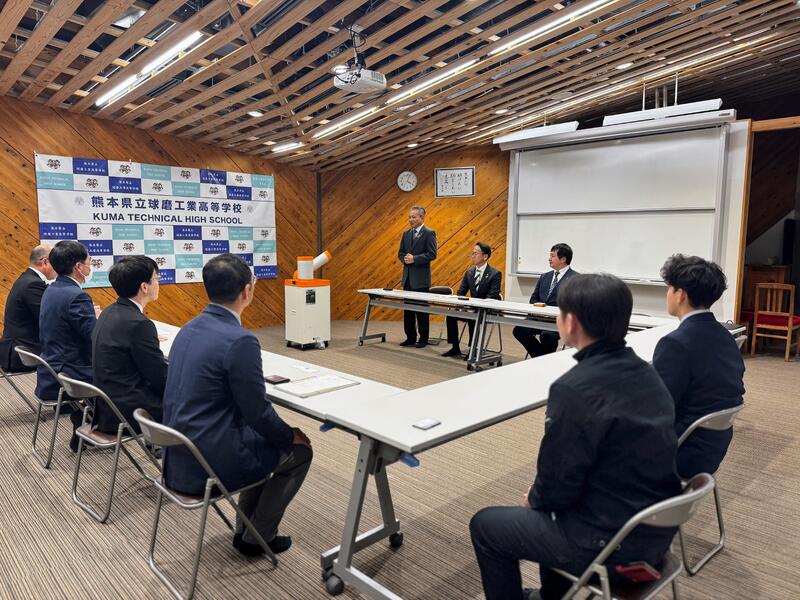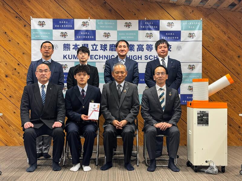 株式会社エバーフィールド様、株式会社肥後銀行様からスポットクーラー1台を御寄贈いただきました。住宅メーカーであるエバーフィールド様には、本校建築科卒業生も多数在籍しており、大工として頑張っています。夏場の熱中症対策として大切に活用させていただきます。ありがとうございます。